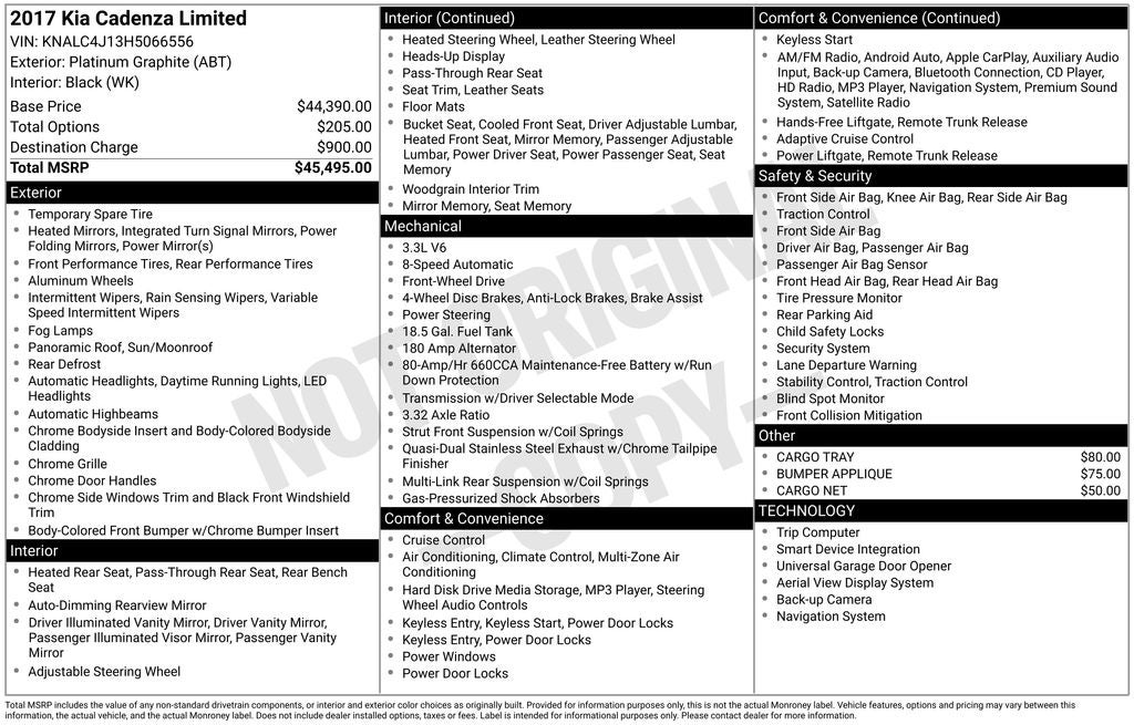 - Vehicle Name: Kia Cadenza