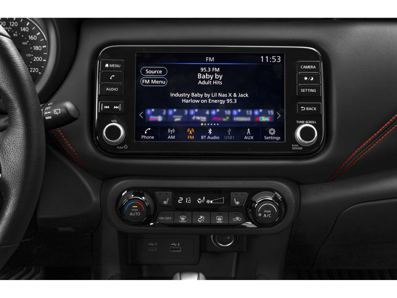 - Steering wheel mounted audio controls