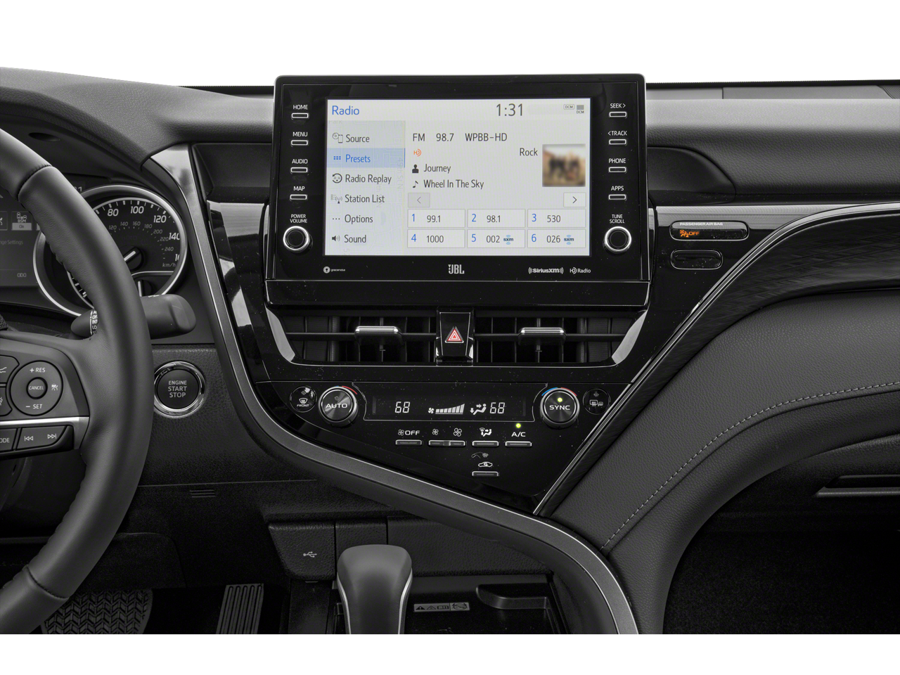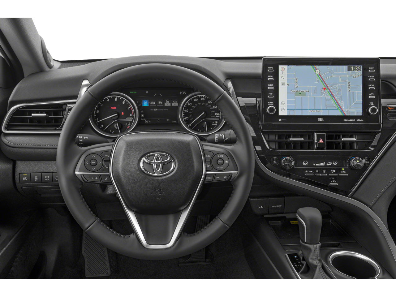 Inside, the Camry XLE's cabin exudes sophistication with its perforated leather seating, multi-stage heated front seats, and power-adjustable driver's seat. The intuitive infotainment system, complete with Apple CarPlay and Android Auto integration, keeps you connected and entertained.
