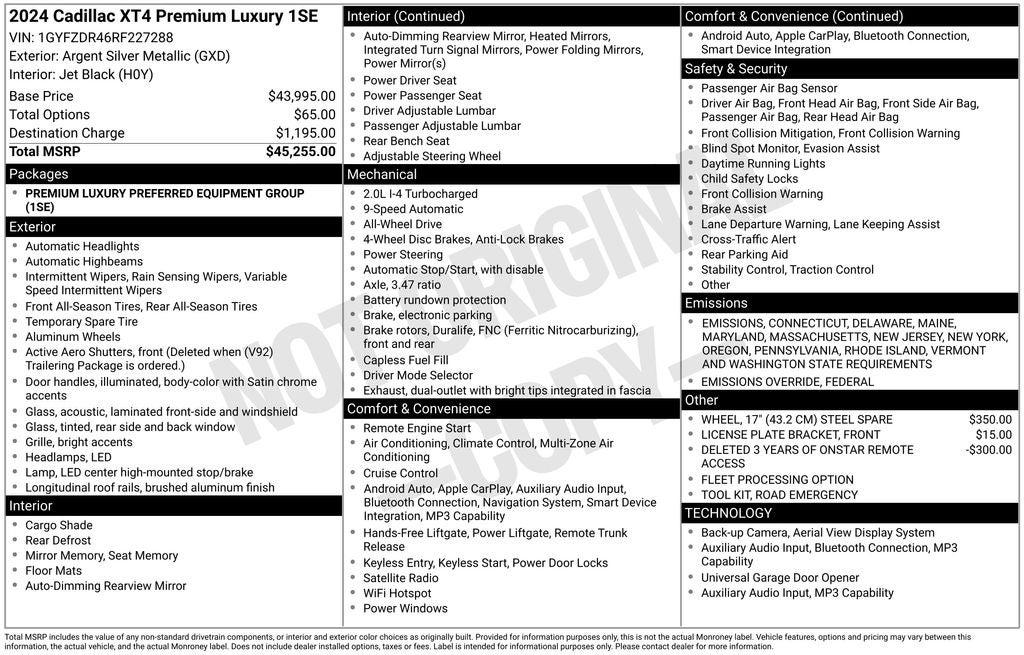 - Vehicle Name: Cadillac XT4